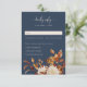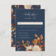 Élevez votre papeterie mariage avec la carte d'intervention "Blue Fall Leaves Response Card" de la Marine avec un élégant script de la collection "Fall Navy Blue Terracotta Floral and Feuille Faire-part de mariage Collection." Immergez vos invités dans l'élégance époustouflante de l'aquarelle peinte à la main, feuilles d'orange et de terre cuite, dahlias crème et beige, et de superbes roses de couleur cuivre et rouille sur un arrière - plan de marine. Cette carte RSVP saisit l'essence d'un mariage d'automne, assurant une expérience cohérente et inoubliable. Conçue avec soin pour compléter les invitations de coordination, les cartes de boîtier et les panneaux de bienvenue, cette carte RSVP ajoute une touche de sophistication à votre mariage.