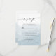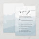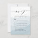 Nos élégantes cartes de réponse de mariage Watercolor Mist présentent un fond lavé d'aquarelle bleue avec une police de calligraphie manuscrite. Personnalisez les cartes de RSVP de mariage chic avec vos détails de mariage et vos options de dîner.