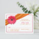 Le texte sur cette carte de réponse de mariage à la fleur de gérbera rose (gérbera rose) et au ruban orange est entièrement personnalisable. Pour le modifier, utilisez l'option de personnalisation. Pour des modifications de texte plus importantes, telles que des changements de police, de couleur de police, de taille de police ou de placement de texte, utilisez l'option de personnalisation. Remarque : au verso, cette carte de réponse comporte un espace pour que les invités puissent noter leurs besoins alimentaires spéciaux ou allergies alimentaires.