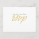 Carte de réponse de mariage à l'écriture blanche et or. Articles assortis disponibles.