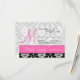Carte RSVP pour invitations de mariage avec damas élégant et monogramme rose chaud et écriture. Style horizontal.com et WhiteWhimsicalWeddings.blogspot.com. Personnalisez avec votre monogramme, vos noms et vos informations de réponse. Choisissez également parmi une variété de polices et de papiers magnifiques pour rendre vos cartes de réponse d'invitation de mariage FABULEUSES ! Conception d'Elke Clarke ©2011. Graphiques sous licence d'utilisation commerciale
