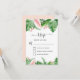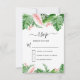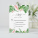 Cartes de réponse de mariage de printemps ou d'été aquarelle avec feuilles de palmier vert tropical et fleurs florales roses blush - comprend une belle et élégante typographie de script avec des fleurs botaniques tropicales modernes et de la verdure pour la célébration spéciale du jour du mariage.