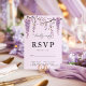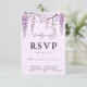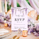 Définissez le ton d'un mariage floral élégant avec cette carte de réponse de mariage Glycine Violette. Ornée de délicates branches de glycine suspendues, ce design évoque une esthétique de jardin romantique. Les invités peuvent facilement confirmer leur présence et leurs choix de repas, ce qui facilite la planification de l'événement. Idéal pour les mariages de printemps, d'été et en plein air, cette réponse s'harmonise parfaitement avec les thèmes de mariage botaniques, rustiques ou de vignoble.
