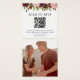 Carte d'invitation de mariage moderne avec un design floral aquarelle rustique burgundy et blush, et un code QR qui dirige vos invités vers votre site web de mariage où ils pourront répondre en ligne. Le verso de cette carte carrée comporte une photo que vous pouvez supprimer ou remplacer par la vôtre.