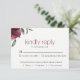 Fleur de bourgogne à l'aquarelle et branches botaniques avec dos de couleur assortie, cartes de réponse de mariage avec option de choix de repas. Personnaliser le style, la couleur et la taille de la police de texte.