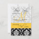 Carte RSVP pour les invitations de mariage avec Damassé élégant, monogramme et écriture et Jaune.com et WhiteWhimsicalWeddings.blogspot.com. Personnalisez avec votre monogramme, noms et informations de réponse. Choisissez également parmi une variété de polices et de papiers magnifiques pour rendre vos cartes de réponse d'invitation de mariage FABULEUSES ! Conception par Elke Clarke ©2011. Graphiques sous licence pour une utilisation commerciale