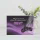 Carte de réponse de mariage de motard de route violet, avec une moto sur un fond dégradé abstrait violet et noir et une maille blanche. Certains éléments fournis par Clipartandfonts.com.