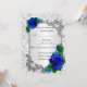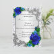 Jolies roses bleues et motif de feuille d'argent encadré. Cette belle carte de réponse de mariage/RV est prête à être personnalisée pour votre jour de mariage spécial. Personnalisez la carte en changeant le texte dans les champs fournis recto et verso. Vous pouvez changer le style de police, la taille et la couleur, ainsi que le type et le style de papier.