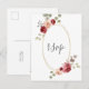La carte de réponse de mariage présente un centre géométrique ovale avec des fleurs de Bourgogne et de l'eucalyptus.