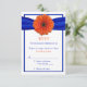 Vous pouvez personnaliser le texte et la couleur de fond sur cette carte de réponse de mariage avec une gerbera orange et un ruban bleu cobalt. Il existe une variété de types de papier parmi lesquels choisir et ce design serait parfait avec beaucoup d'entre eux. Pour modifier le texte, utilisez l'option de personnalisation. Pour des modifications plus importantes, telles que des changements de police, de couleur de police, de taille de police, de disposition du texte ou de couleur de fond, utilisez l'option "personnaliser". Les couleurs de cette invitation sont orange, bleu cobalt et blanc. REMARQUE : Cette invitation est un design plat sans embellissements 3D. En plus d'une carte de réponse, avec des modifications au texte, vous pouvez également faire de ceci une carte d'insertion d'informations sur la direction, la réception, l'hébergement et / ou des informations générales sur le mariage.