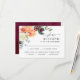 Complétez votre collection avec cette carte de réponse de mariage coordonnée, dotée d'un coin floral aquarelle dans des tons de Bourgogne, rose et d'automne chaud. Comprend un espace pour les noms, la réponse de présence et une section de sélection de repas facile. Une mise en page moderne et épurée garde tout lisible tout en correspondant à un thème de mariage floral automnal romantique.