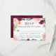 Terminez votre suite avec cette carte de réponse de mariage coordonnée, dotée d'une bordure florale aquarelle luxuriante en bourgogne, rose et verdure. Comprend un espace pour les noms des invités, la réponse de présence et une section de sélection de repas facile. Romantique et lisible pour les célébrations de mariage d'automne, de jardin et de vignoble.