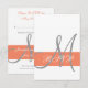 Utilisez cette carte de réponse de mariage simple et élégante pour correspondre à l'invitation de mariage dans la boutique avec la police cooperplate. Vous pouvez modifier le texte pour ajouter vos dires et le choix des repas. Carte de réponse de mariage grise, blanche et corail avec votre monogramme et vos noms dans un design moderne, élégant et stylé. ELKE CLARKE © pour Monogram Gallery. Affiché sur du papier blanc de base.