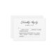 Notre carte de réponse de mariage est l'ajout parfait à votre thème de mariage contemporain. Avec son design simple mais élégant, cette carte impressionnera certainement vos invités et donnera le ton pour votre jour spécial. Les mots "Répondre s'il vous plaît" sont dans une belle écriture élégante, invitant vos invités à répondre rapidement à votre invitation de mariage. Nous pensons que chaque détail compte, et cette touche charmante fera en sorte que vos invités se sentent appréciés et valorisés. Offrez à vos invités la possibilité de choisir leurs préférences culinaires. Cette fonctionnalité pratique et organisée vous fera gagner du temps et garantira que les besoins alimentaires de chacun soient satisfaits. Notre carte incarne l'essence du style moderne et du minimalisme. Ses polices classiques et sa palette de couleurs personnalisables se fondront sans effort dans votre thème de mariage, assurant un look cohérent et sophistiqué. Votre mariage est une célébration de votre histoire d'amour unique, et notre carte de réponse de mariage reflétera l'élégance et le style contemporain que vous désirez. Alors qu'est-ce que vous attendez ? Il est temps de faire une excellente impression et d'assurer un processus de planification sans heurts pour votre jour spécial. Commandez maintenant et commencez votre voyage inoubli