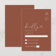 Créez une esthétique moderne sans effort pour votre jour spécial avec notre carte de réponse de mariage minimaliste en terre cuite. Avec vos initiales personnalisées dans le coin supérieur gauche, cette carte de réponse sophistiquée évoque un charme intemporel et élégant qui fera de votre mariage un jour inoubliable. Avec un design épuré et net d'orange brûlée, cette carte de réponse classique ajoutera une touche d'élégance moderne à votre jour spécial.