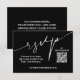 Ces cartes de réponse de mariage modernes en noir et blanc sont un moyen facile pour vos invités de répondre sur votre site web de mariage. Incluez votre propre code QR et votre site web de mariage sur le devant et des informations supplémentaires au dos (supprimez notre texte pour laisser le dos vide). Les couleurs peuvent être modifiées avec nos outils d'édition. Articles CORRESPONDANTS dans notre collection.