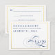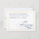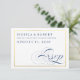 Une carte de réponse de mariage traditionnelle et élégante avec écriture calligraphique bleu marine et blanc avec bordure dorée (CE N'EST PAS DU METALISE).