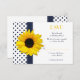Le texte sur cette carte de réponse RSVP de mariage élégante avec des tournesols et des pois blancs sur fond navy est entièrement personnalisable. Pour le modifier, utilisez l'option de personnalisation. Pour des modifications de texte plus importantes, telles que des changements de police, de couleur de police ou de disposition du texte, utilisez l'option de personnalisation.