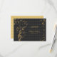 Carton de réponse ou de RSVP de mariage aux notes de musique élégantes noires et dorées en forme d'harlequin. Le texte est entièrement personnalisable. Pour le modifier, utilisez la fonction "Personnaliser". Pour des changements plus importants, y compris des modifications de la police, de la couleur de la police, de la taille de la police et de l'emplacement du texte, utilisez la fonction "Personnaliser". Les couleurs sont dorées et noires. Le design présente des notes de musique sur un motif de damier d'harlequin. De plus, avec des changements de texte, vous pouvez utiliser ceci comme n'importe quelle autre carte d'information de mariage.
