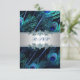 Élégante carte de réponse de paon royal bleu avec de jolies bandes argentées sur un magnifique fond de paon bleu royal. Cette belle invitation de réponse de mariage au paon bleu royal est facilement personnalisable pour votre événement en ajoutant vos coordonnées, style de police, taille et couleur de police, et libellé. Il s'agit d'un design imprimé sans vraies plumes, bijoux, etc.
