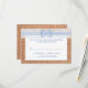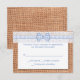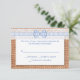 Cartes de réponse RSVP de mariage chic de campagne rustique, réalisées dans un style burlap, avec une zone de texte blanche. Des graphiques d'un bandeau de dentelle blanche avec un ruban et un nœud gingham bleu clair et blanc s'étendent sur le dessus. Personnalisez le texte bleu pour votre jour spécial. Produits de mariage assortis disponibles.