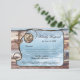 Carte de réponse pour les invitations assorties avec un design à thème nautique avec du bois vieilli et des vagues océaniques et une image d'une ancre et d'un nœud en forme de cœur dans une corde.