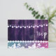 Célébrez l'amour avec élégance et charme en utilisant cette carte de réponse rustique magnifiquement conçue. Conçue par Alma Wad, cette invitation recto-verso présente une mise en page avant et arrière, entièrement imprimée avec des détails d'inspiration vintage. Les textures de bois, la délicate dentelle blanche rosée et les motifs de cœur en ficelle romantiques se réunissent dans une fusion rustique moderne. Les tons violets doux ajoutent une touche douce et romantique, faisant de cette carte de réponse un choix parfait pour les mariages champêtres, de grange ou sur le thème de la dentelle.