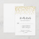 Cette carte de réponse de mariage comporte des confettis dorés en pointillés sur le dessus et est accentuée d'une calligraphie élégante. Cette carte propose une personnalisation pour une réponse et des choix de repas.