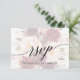 Cette carte de réponse de menu floral décoloré de calligraphie élégante est parfaite pour un mariage d'automne. Le design présente une typographie romantique et fantaisiste superposée à un magnifique bouquet de fleurs roses blush, marsala et burgundy. Cette carte de réponse de mariage demande commodément aux invités quel repas ils aimeraient à votre réception.