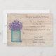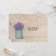 Cette carte de réponse de réception de mariage aux violettes dans un pot Mason bleu présente mon art dessiné à la souris. Recherchez les faire-part de mariage et les annonces de Save The Date assortis.