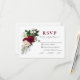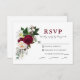 Carte de réponse de mariage élégante avec fleurs de Bourgogne Marsala à l'aquarelle et choix de repas, comprenant des pivoines, des feuilles d'eucalyptus et d'autres verdures magnifiques. Dos blanc.