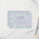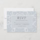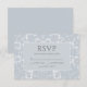 Ces cartes de réponse de mariage plates de 3,5 po x 5 po présentent un design de dentelle au crochet délicat et élégant dans une teinte douce de bleu poussiéreux.