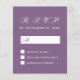 Un budget simple et minimaliste pour un mariage. Il a un texte blanc sur arrière - plan pourpre poussiéreux, une couleur moderne, et des boîtes blanches à remplir. Le titre RSVP et la lettre M sont écrits dans un élégant script calligraphique, le reste en casquette.