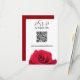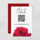 Cartes de réponse mariage avec option de réponse de code QR et rose rouge réaliste. Customisez le texte en noir et incluez un site mariage ou une autre façon de répondre aux clients. L'inverse est de rouge solide.