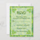 Carte de réponse RSVP pour le mariage irlandais St. Patrick, avec un motif blanc vert et un coeur élégant en trèfle/shamrock vert irlandais.