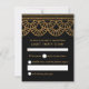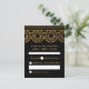Cette carte en réponse art déco noir et or garde l'aspect sombre et romantique de la suite avec des boîtes blanches où les clients peuvent écrire leurs informations. Les pétoncles en parties scintillant d'or Faux balaient le dessus de la carte et disposent d'un dossier correspondant du même motif pour cravate l'ensemble de la suite.