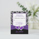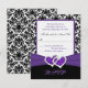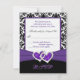 Cette carte de réponse RSVP en damas noir et blanc a un ruban imprimé violet et des cœurs en diamants scintillants imprimés qui correspondent à l'invitation de mariage présentée ci-dessous. Si vous avez besoin d'autres articles assortis ou si vous souhaitez une autre combinaison de couleurs, veuillez envoyer un e-mail à niteowlstudio@gmail.com avec votre demande.