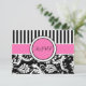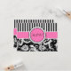 Cette carte de réponse moderne à rayures roses, noires et blanches avec un damas floral correspond à l'invitation de mariage présentée ci-dessous. Le texte et le type de papier sont personnalisables. ****VEUILLEZ vous assurer que tout le texte est centré et dimensionné exactement comme vous le souhaitez, car il sera imprimé exactement comme vous le voyez sur votre écran. Je ne le verrai pas, et Zazzle ne modifiera rien, donc si vous avez besoin d'aide, veuillez m'envoyer un courriel AVANT de passer votre commande. Si vous avez besoin d'articles assortis, veuillez envoyer votre demande à niteowlstudio@gmail.com.