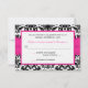Cette carte de réponse en damassé noir et blanc est ornée d'un ruban imprimé rose chaud et d'une broche en cœurs en diamants joints et scintillants imprimés qui correspond à l'invitation de mariage présentée ci-dessous. Si vous avez besoin d'autres articles assortis ou si vous souhaitez une autre combinaison de couleurs, veuillez envoyer un courriel à niteowlstudio@gmail.com avec votre demande.