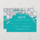 Carte de réponse en paillettes de diamant sarcelle et argent