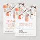 Faire-part de mariage avec pots mason, fleurs, oiseaux amoureux et cordes à cœur - mignon et fantaisiste, parfait pour le printemps et les mariages en plein air.