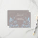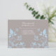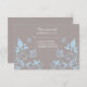 Carte de réponse Mariage Floral à papillon doux et appétissant avec un arrière - plan gris pâle et muet, des papillons bleu clair et des ornements de vigne florale. Cette carte RSVP mariage élégante est le choix idéal pour un mariage moderne et chic. Facile à customiser, ajoutez simplement les détails de votre mariage dans les champs de texte fournis. Cliquez sur le bouton "Customiser" pour trouver d'autres options de personnalisation.