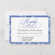 Sophistiqué et élégant, cette carte de réponse de mariage à l'écriture moderne et aux fleurs bleues pervenche coordonne avec notre collection de mariage Foi, Espoir et Amour comprenant des invitations et des accessoires chrétiens contemporains. Conçue par Natalie Schorr pour Graphic Suite sur Zazzle.