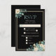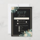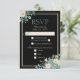 Carte de réponse de mariage formel noir avec arrangement floral sarcelle et crème