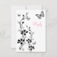 Cette carte de réponse RSVP florale noire et blanche avec des papillons et des fleurs a une touche de rose doux. Elle correspond à l'invitation de mariage présentée ci-dessous. Si vous avez besoin d'autres articles assortis dans ce design, veuillez envoyer votre demande par courriel à niteowlstudio@gmail.com. Les articles assortis sont présentés ci-dessous.