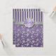 Carte de réponse florale rayée violette et grise