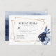 Design floral moderne et élégant. Un cadre géométrique or fin fournit la structure de cette carte RSVP chic. Un rose bleu marine et une plumeria bleu clair se trouvent dans le coin inférieur droit. Les feuille sont également dans les tons bleus. Des options de réponse et des choix de nourriture sont également fournis. Le dos de la carte de réponse est un lavage d'aquarelle bleu profond. Cette carte de réponse fait partie de la collection Indigo Garden. Vous trouverez de nombreux modèles mariages do-it-yourself pour créer un superbe ensemble de papeterie mariage ainsi qu'un décor mariage. Vous devriez voir un lien vers cette page. Si vous n'avez pas besoin d'aide pour customiser un article, veuillez me contacter.