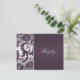 Cette carte-réponse moderne en damas floral violet lapis et gris argenté correspond aux invitations de mariage présentées ci-dessous. Elle est entièrement personnalisable, y compris le type de papier. ****VEUILLEZ NOTER qu'il n'y a pas de biseautage ou de gaufrage sur cette invitation (ni sur aucune autre sur Zazzle). C'est un design plat et lisse. DE PLUS, je ne suggère PAS de changer le papier en métallisé argenté, car c'est un papier très foncé. Si vous avez besoin d'aide pour personnaliser ce produit avec votre propre texte, ou si vous avez besoin d'articles assortis dans ce design, veuillez envoyer un e-mail à niteowlstudio@gmail.com. ****L'enveloppe assortie est présentée ci-dessous et est à la taille de CETTE carte de réponse, et non pour une utilisation avec la taille 3,5 "x 5" de la RSVP