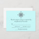 Elégante carte de réponse de mariage, turquoise de lumière avec des ornements de couleur argentée en haut. Customisez le texte en fonction de vos besoins.