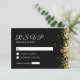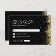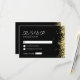 Carte RSVP Noir Doré moderne - présente des gouttes scintillantes sur l'arrière - plan noir avec texte blanc.